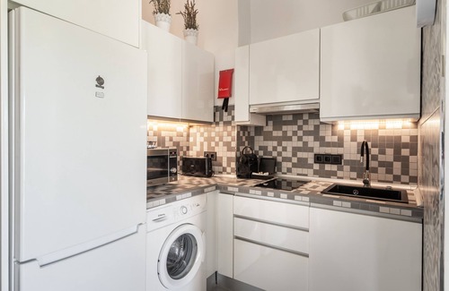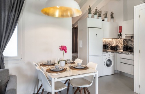Among the on-site amenities are high-speed Wi-Fi, a dedicated workspace for home office, air conditioning, a washing machine, a coffee machine and a TV.