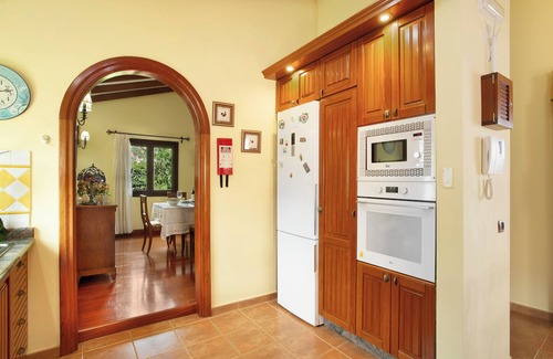 The vacation home "Casa Lucas" is located in Vega de San Mateo on Gran Canaria and overlooks the sea. The 300 m² property consists of a living room with a sofa bed for 2 people, a fully-equipped kitchen with a dishwasher, 3 bedrooms and 3 bathrooms as well as an additional toilet and can therefore accommodate 8 people. The home also features high-speed Wi-Fi (suitable for video calls) with a dedicated workspace for home office, air conditioning throughout the house, heating by a heat pump, a fan, a washing machine, a game console, a DVD player, as well as cable and satellite TV. Children are allowed and a baby cot and a high chair as well as children's toys and books are also available.
