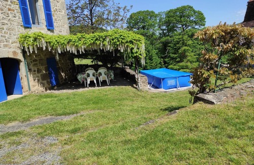 Rustic country house "Cazals", 430 m a.s.l surrounded by meadows and fields. 700 m from the centre of Teyssieu, 13 km from the centre of Bretenoux, 14 km from the centre of Saint Céré, in a quiet position on a slope, 4 km from the river. Private: natural state property 5'000 m2 (fenced) with wildlife garden and trees, swimming pool (above ground) (3.80 m diameter, depth 90 cm, seasonal availability: 01.May. - 15.Sep.). Table tennis. Stepped path (4 steps) to the house. Parking at the house on the premises. Shop 700 m, supermarket 13 km, bus stop "Laval-de-Cère" 7 km. Golf course (9 hole) 14 km.