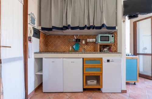 The vacation home is set within a few-minute drive of essential services such as bars, restaurants, pizzerias, and a supermarket as well as beaches of Piscina Rei, Scoglio di Peppino, and Villasimius.