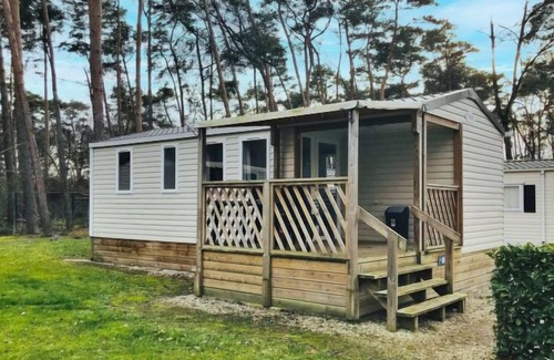 "4 persoons", 3-room mobile home 30 m2. Practical furnishings: entrance hall with separate WC. Living/dining room with dining table and flat screen. Exit to the terrace. 1 double bedroom with 1 double bed. 1 double bedroom with 2 beds. Open kitchen (4 gas rings, kettle, microwave, electric coffee machine). Shower. Heating. Terrace. Terrace furniture. Facilities: Internet (WiFi, free). Reserved parking (1 car) at the house. Please note: non-smoking house. Smoke alarm.