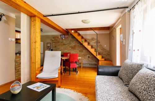Balatonszemes 6 km from Balatonlelle: Small, cosy house "Duetto", 2 storeys. In the resort, 850 m from the lake, 1.8 km from the beach. For shared use: garden 300 m2 (fenced), lawn for sunbathing. Private: beautiful garden to relax. In the house: WiFi, air conditioning. Available: bicycles (2). Parking at the house. Grocery 350 m, restaurant 1 km, café 1.4 km, bicycle rental 4 km, grass beach 1 km, thermal baths "Igal" 40 km. Marina 1.4 km, tennis 2 km, cycle lane 1 km, children's playground 400 m. Nearby attractions: Kereki Dino Park 23 km, Balatonboglár Adventure beach 11 km, Giant Wheel Balatonlelle 7 km, Zamárdi Adventure Park 30 km, Hévíz Thermal Bath 62 km, Bella Zoo Siófok 43 km. Please note: the owner lives on the same property.