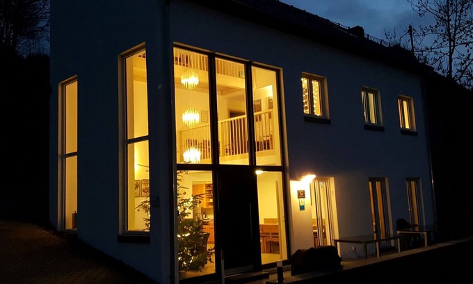 Vacation home Eifel-Atrium, 150sqm, max 16 persons is located in Zweifelscheid. Vacation home Eifel-Atrium, 150sqm, max 16 persons provides accommodation, featuring Pet Friendly, Balcony/Terrace, Bedding/Linens, among other amenities. This Apartment features Pet Friendly, Balcony/Terrace, Bedding/Linens, to make your stay a comfortable one.