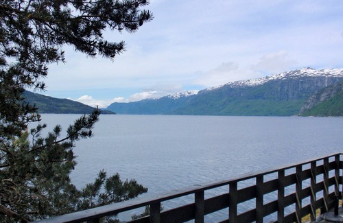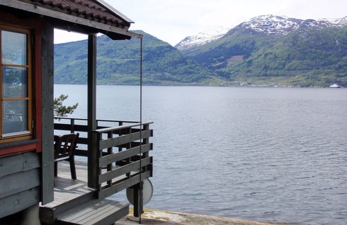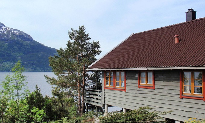 Cosy timber house "Eiknes", built in 1999. In the hamlet Tjoflot 10 km from the centre of Djønno, 51 km from the centre of Voss, 75 km from the centre of Odda, in a secluded, sunny position, 15 m from the sea, 15 m from the fijord. Bathing place, fish-processing table. Private: natural state property. Rowing boat, parking on the premises. E-charging station. Shop 26 km, supermarket 30 km, bus stop "Vallavik" 16 km, railway station "Voss" 51 km, ferry "Bergen" 152 km, swimming bay 15 m. Fishing possibilities 10 m. Hiking paths: Oksen. Table or fish gutting and smoking oven available (shared use).
