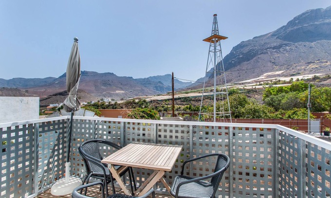 Located in La Aldea de San Nicolás, this renovated 70 sqm vacation home where the host's ancestors once lived welcomes up to 4 guests. You will find 2 bedrooms, 1 bathroom, and a private fully-equipped kitchen. Amenities include Wi-Fi, air conditioning, TV, highchair, and dedicated workspace. Self check-in ensures a smooth arrival experience.