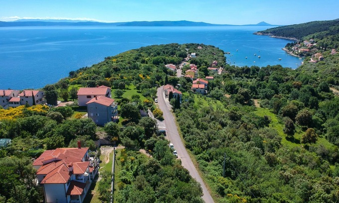 Semi-detached house "Ester". 10 km from the centre of Labin, 15 km from the centre of Rabac, 150 m from the centre of Sveta Marina, 350 m from the sea, 350 m from the beach. For shared use: property 900 m2 with trees. In the house: internet access. Motor access to 30 m from the house. 30 m footpath to the house. Public parking 30 m on the road. Shop, restaurant 150 m, bus stop 7.4 km, pebble beach 350 m. Marina 15 km.