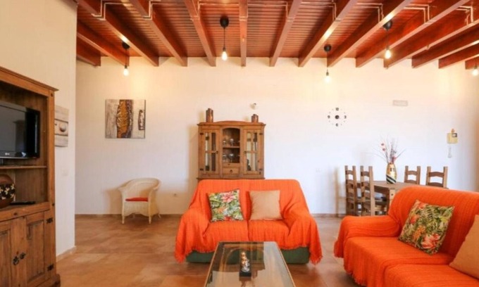 The holiday home "Estrella House" is located in Gáldar and is the ideal accommodation for a relaxing getaway. The 100 m² property consists of a living room, a well-equipped kitchen, 2 bedrooms, and 1 bathroom and can therefore accommodate 4 people. Additional amenities include high-speed Wi-Fi (suitable for video calls) with a dedicated workspace for home office as well as a TV.