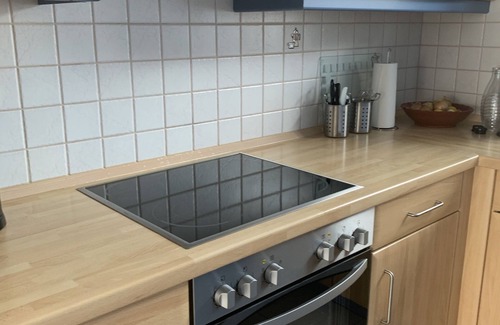 Ground floor: wardrobe, 3-2-upholstery, flat screen TV with satellite connection, stereo system incl. CD player, dining table with 4 chairs, (2 more chairs available), games. EC Kitchen: Complete fitted kitchen with fridge / freezer, 4-plate electric stove with oven, dishwasher, coffee maker, espresso machine, blender, toaster. Storeroom: high chair, ironing board, iron, clothes dryer. Flooring: ground floor and the bathroom upstairs are tiled, upstairs there is a cork floor. Upper floor Bedroom 1: double bed, wardrobe, nightstand, stoves. Upper floor Bedroom 2: Two single beds, wardrobe, nightstand, stoves, small seat group. Upper floor: shower, washbasin, WC, washing machine, hair dryer. Outside area: car parking space, terrace, external storage room, Liegewiese 2 sun loungers, 4 highchair chairs with upholstery and garden table, umbrella, pets allowed on request.