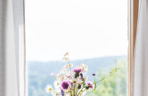 "Hoja 1", 3-room semi-detached house on 2 levels. Spacious, comfortable furnishings: living/dining room with open-hearth fireplace, dining table, TV and heating stove. 1 double bedroom with electric heater. Kitchen (2 ceramic glass hob hotplates, kettle, microwave, electric coffee machine). Shower, sep. WC. Wood heating. Upper floor: 1 room with 2 double beds and electric heater. Very beautiful panoramic view of the countryside. Suitable for families. Maximum 1 pet/ dog allowed.