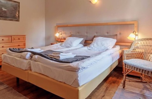 2-room house 50 m2. Living/dining room 22 m2 with 1 double sofabed (150 cm, length 210 cm), radio and CD-player. 1 room 15 m2 with 2 beds (90 cm, length 200 cm). Kitchen (4 hot plates, dishwasher). Shower/WC. Electric heating, wood heating. Terrace 4 m2. Terrace furniture. Facilities: baby cot for up to 3 year olds. 1 pet/ dog allowed.
