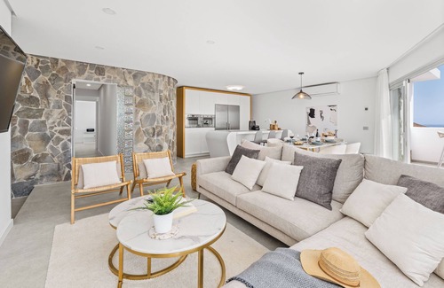 The vacation home "Karat Punta Rasca" is located in Arona and boasts a beautiful view of the Atlantic. The 2-storey property consists of a living room, a well-equipped kitchen with a dishwasher, 3 bedrooms and 3 bathrooms as well as an additional toilet and can therefore accommodate 8 people. Additional amenities include Wi-Fi (suitable for video calls), a TV, air conditioning in all rooms, heating, a washing machine as well as a dryer. A baby cot and a high chair are also available.