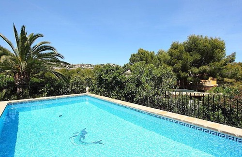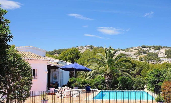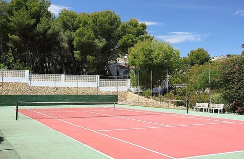 Fanadix: Single-family house "Krumel". 3 km from the centre of Moraira, 1.6 km from the sea. Private: property 2'000 m2 (fenced), swimming pool (5 x 10 m, seasonal availability: 01.Jan. - 31.Dec.). Tennis, terrace, garden furniture, barbecue. In the house: roof terrace. Supermarket 1.5 km, restaurant 1.5 km, bar 1.5 km, bus stop 3 km, sandy beach 2.5 km, swimming bay 1.6 km. Golf course (18 hole) 1 km. The owner does not accept any youth groups.