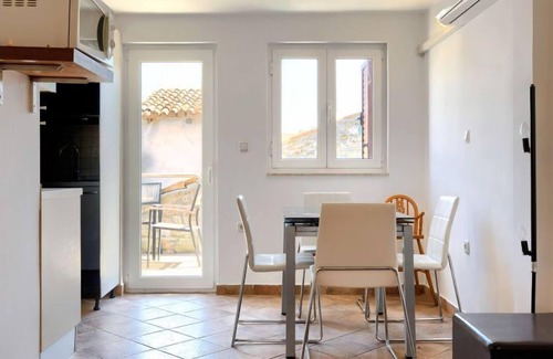 Terraced house "Marko", 2 storeys. In the centre of Poreč, 150 m from the sea, 500 m from the beach. In the house: internet access, washing machine. Public parking extra. Shop 200 m, restaurant 10 m, bus stop 350 m, rocky beach, public bathing area 500 m. Tennis 1 km, walking paths from the house 100 m, cycle lane 500 m.