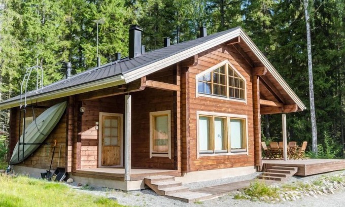 72 km north of Joensuu, Lake Pielinen 150 m (871,2 km²), common beach with shallow sandy bottom. Kayak. Log cottage 2007, kitchen-living room with convertible sofa, bedroom with one bed, bedroom with 2 bunk beds, upstairs one bed room (15 m²) with 2 beds and 2 mattresses, washroom, sauna (elec. stove), terrace. High standard log cottage by the Lake Pielinen in Purnuniemi cottage area. The hiking trails of Koli National Park near by. Kayak is a guests free use. The cottage is suitable for downhill and cross-country skiers; Ukko-Koli slopes 3,5 km. Illuminated skiing track 400 m. Common covered grill with neighbour cottage Victoria.