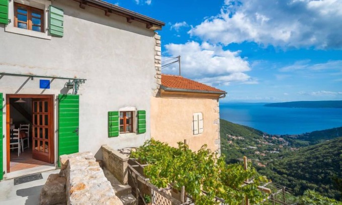 Rustic terraced house "Mickey", 2 storeys. In the hamlet Sučići 3 km from the centre of Mošćenička Draga, in a quiet, sunny position on a slope, 3 km from the sea, 3 km from the beach, in a cul-de-sac. Private: terrace (10 m2), garden furniture, barbecue. In the house: internet access, washing machine. Steep, narrow motor access to 60 m from the house. Parking (for 2 cars) at 80 m. Shop 3 km, restaurant 3 km, bus stop 2.6 km, pebble beach 3 km, public bathing area 3 km.