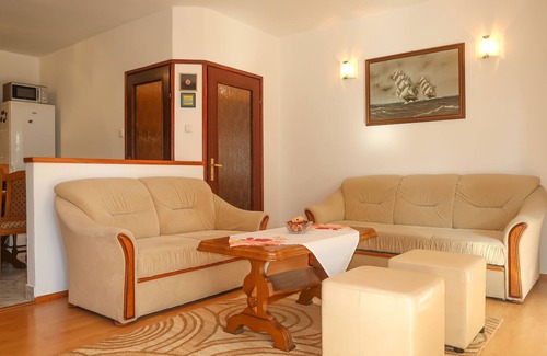 Semi-detached house "Mila". 1.5 km from the centre of Jadranovo, 7 km from the centre of Dramalj, 13 km from the centre of Crikvenica, 250 m from the sea, 250 m from the beach, in a cul-de-sac. For shared use: property 500 m2 with trees. In the house: internet access. Parking on the premises. Shop 500 m, bus stop 550 m, pebble beach 250 m. Please note: airfield 14 km from the property.
