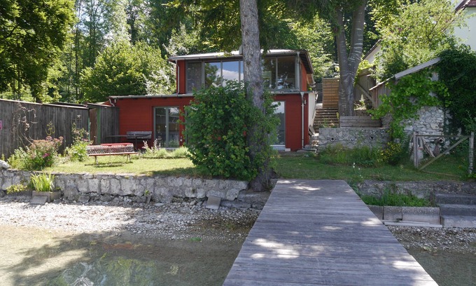 Holiday house with approx. 80 m² living space directly at the Pilsensee with own lake access and footbridge.