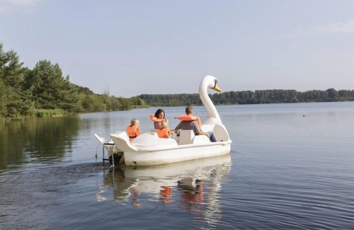 Mol 24 km from Turnhout: Large, child friendly holiday development "Sunparks Kempense Meren". Outside the resort, 7.6 km from the centre of Mol, on the lake, in the countryside. For shared use: indoor pool. Shower/WC in the pool area, children's pool, slide, hot tub, badminton (extra), beach volleyball, children's playground (slide, swing, sandbox), petting farm. In the complex: reception, restaurant, WiFi, spa area for shared use, bowling, table tennis (all extra), shopping facilities, bicycle rental. Central parking spaces. E-charging station. Railway station "Mol" 7.6 km, lake Zilvermeer 2 km. Golf course (18 hole) 800 m, minigolf 50 m. Nearby attractions: Het Bourgondisch Huis 7 km, De Olmense Zoo 10 km, Bobbejaanland 20 km, Plopsa Indoor Hasselt 34 km, Maasmechelen Village 44 km. Please note: car-free holiday complex, car recommended. Entertainment in the season. Suitable for families. The owner does not accept any youth groups. Loading and unloading of baggage is possible at the holiday house. The complex has night security. Airfield 38 km from the property. The photograph shows a typical example. All houses/apartments are individually designed/furnished. Longstays (21 days or more) and workers are on request.