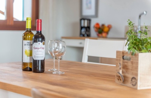 The holiday home “Son Vivot” is located in Inca, in the beautiful island Mallorca, and impresses guests with its charming outdoor area as well as with its beautifully-decorated interiors. It consists of a living room, a well-equipped kitchen with a dishwasher, 2 bedrooms (one with 2 single beds, one with a double bed), as well as 3 bathrooms and can therefore accommodate 4 people. Additional amenities include Wi-Fi, fans, satellite and cable television, a baby cot and a highchair. There is a pellet stove fireplace that heats the property.