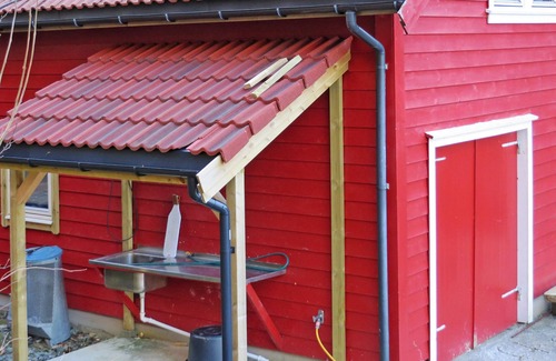 Certified fishing house "Tufto". In the district of Bergsvåg 7 km from the centre of Lunde, 46 km from the centre of Leirvik, 64 km from the centre of Bergen, 5 m from the fijord. Bathing place. Private: natural state property. Patio, garden furniture, barbecue, fish-processing table. Motor boat (on order), parking on the premises. Shop 7 km, supermarket 16 km, bus stop "Malkenes kai" 4 km, railway station "Bergen" 63 km, ferry "Bergen" 64 km. Fishing possibilities 10 m. Table for fish gutting with running water available.