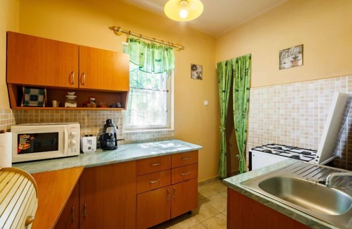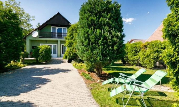 Balatonlelle 28 km from Siófok: Cosy house "Verde", renovated in 2008. In a quiet, sunny position, 300 m from the lake, 900 m from the beach. Private: garden 500 m2 (fenced), lawn for sunbathing. Shop 300 m, grocery 600 m, restaurant 300 m, grass beach 800 m. Nearby attractions: Siófok Giant Wheels 37 km, Festetics Castle 52 km, Marcali Spa 45 km, Kishegyi Viewpoint 6 km, Konyári Winery 4 km, Theme Park 2 km.