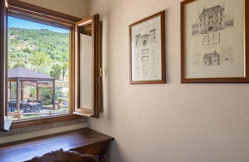Country house "Villa". In the hamlet Londa 8 km from the centre of Rufina, 7 km from the centre of Dicomano, 40 km from the centre of Firenze, in a secluded, elevated position on top of a hill. For shared use: property 5 ha with trees, natural garden. Pergola, garden furniture, barbecue. Private: garden 500 m2, natural garden, swimming pool (13 x 5 m, depth 100 - 250 cm, seasonal availability: 01.May. - 30.Sep.). Shower/WC in the pool area, garden furniture. 500 m long very steep motor access. Parking on the premises. Shop 1 km, supermarket 6 km, railway station "Contea" 4 km. Golf course (18 hole) 30 km, riding stable 5 km. Please note: the owner lives on the same property. Due to a very narrow curve uphill not all vans and multivans with wheelbase exceeding 2.95 meters are allowed. , all cars with wheelbase up to 2.95 meters are allowed.
