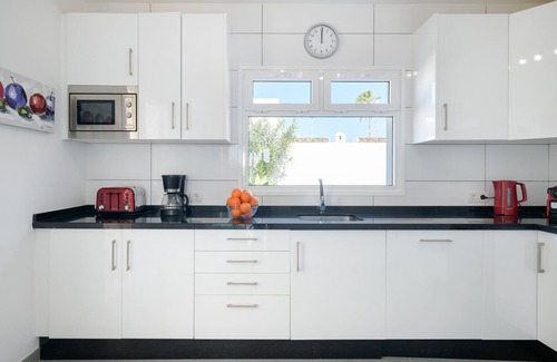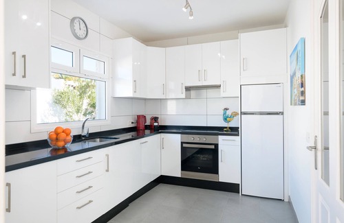 The vacation home Villa de Carrida in Tías is the perfect accommodation for a stress-free holiday with your loved ones. The 80 m² property consists of a living room, a well-equipped kitchen, 3 bedrooms (the master bedroom has en suite bathroom) and 2 bathrooms and can therefore accommodate 6 people. Additional amenities include Wi-Fi (suitable for video calls), air conditioning, a washing machine as well as a TV with English and Irish channels and a DVD player. A baby cot and a high chair are also available.