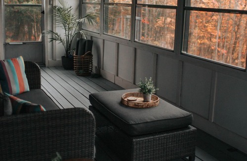 Large screened in sunroom with a seating area and room for yoga / workout. Yoga mats available or bring your own. Spend dusk in the sunroom to enjoy wild deer sightings in the backyard in this mosquito free space.