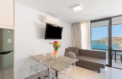 The holiday apartment Ocean wave retreat in Patalavaca is the ideal accommodation for a relaxing holiday with a view of the Atlantic. The 50 m² property consists of a living room with a sofa bed for 2 people, a kitchen, 1 bedroom and 1 bathroom and can therefore accommodate 4 people. Additional amenities include Wi-Fi with a dedicated workspace for home office, a TV, air conditioning as well as a washing machine.