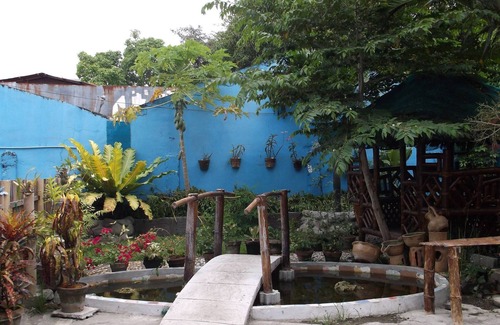 This property is our ancestral home, its a house, duplex style. the other side, I rented as an office space, for my non-profit business. the other side is my VRBO rentals. Property is gated, with a wide open patio, I use for venue rentals, and for my humanitarian activities. Outside cooking, bathroom on the private room, a small sink for cleaning dishes, kitchenware is provided, Refrigerator, microwave, aircon and wifi.