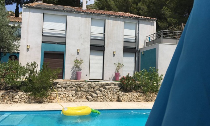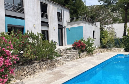 Jolie maison moderne en Provence, 2500m² de jardin dans un quartier résidentiel calme, dans une pinède, à 2 km du village de Gémenos.