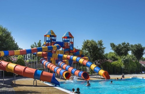 Vacation village Francesco Lodge Prestige Lilac for 5 persons is located in Duna Verde. Vacation village Francesco Lodge Prestige Lilac for 5 persons provides accommodation, featuring Air Conditioner, Parking, Pool, among other amenities. This House features Air Conditioner, Parking, Pool, to make your stay a comfortable one.