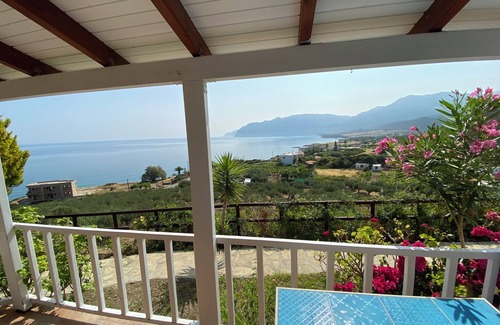 The 2 bedroom house has a double bed and two single beds and a fully furnished kitchen that seats four. The second bedroom has a separate entrance. A crib is available for younger children. The shaded front porch offers you the perfect place to enjoy the fantastic views of the surrounding landscape. You will enjoy watching the sunrise and sunset, causing beautiful reds and purples to colour the cliffs on the opposite side of the bay. Fresh air and sea breezes, and perhaps a walk in the hills, will open your appetite for a dinner of fresh fish at one of the tavernas in the village. Special celebrations take place in the village at Easter time and you are welcome to join in. The villagers are very friendly and the village offers much hospitality all year round. In the fall, olives are harvested and oil is made.