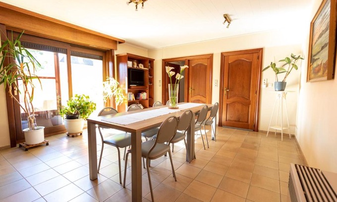Set just 24 km from Phalempins Metro Station, Vakantiewoning Belle Vue offers accommodation in Zonnebeke with access to a shared lounge, a garden, as well as a shared kitchen. The accommodation is 24 km from Colbert Metro Station, and guests benefit from private parking available on site and free WiFi. The holiday home is fitted with 5 bedrooms, 2 bathrooms, bed linen, towels, a flat-screen TV with satellite channels, a dining area, a fully equipped kitchen, and a terrace with garden views. Cycling can be enjoyed nearby. Tourcoing Center Metro Station is 25 km from the holiday home, while Tourcoing Station is 26 km from the property. The nearest airport is Lille Airport, 46 km from Vakantiewoning Belle Vue.