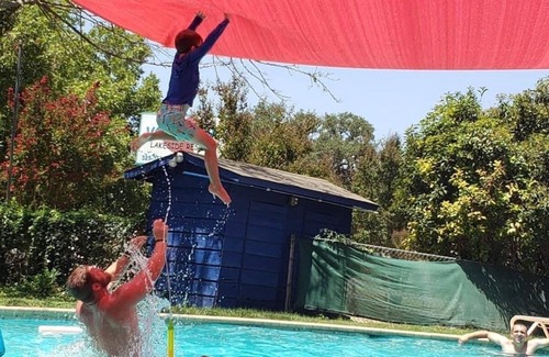 Yes, this Kingsland cabin has a swimming pool. Check the Facility Overview section for details about the pool and other available facilities.