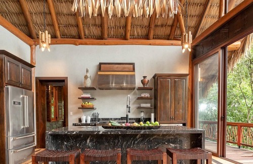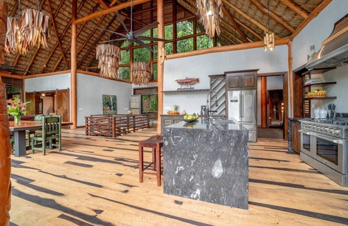 While the home has air conditioning in both master suites and all the comforts of a true 5 star resort it operates 100% from the high end solar system located a few hundred yards away in the staff area. The home has the most efficient air conditioning system, lights and appliances available which makes it possible to run exclusively off the solar system.
