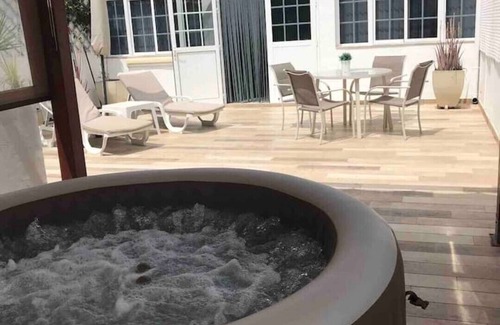 A modern, bright, penthouse apartment in the magnificent valley of Mogan. Many guests love the huge private roof terrace complete with jacuzzi, (JACUZZI is an OPTIONAL extra for 7 day stays or more only) loungers, parasol and BBQ. Many guests chill here all week as its so relaxing. Yoga enthusiasts love it due to the vast space! Free Wifi and and SMART TV