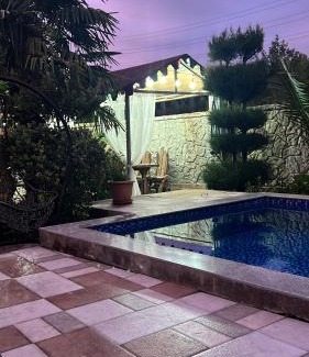 BathroomBody soap, Shower, Towels, Hairdryer, Toilet, Private bathroom, Toilet paper, Bathtub or showerMedia & TechnologyTV, Flat-screen TVGeneralIroning facilities, Heating, Soundproof, Fire extinguisher, Air conditioning, Private entrance, Mosquito net, Iron, Trash cansOutdoorsOutdoor dining area, Outdoor furniture, Balcony, Terrace, Private pool, BarbecueKitchenElectric kettle, Wine glasses, Toaster, Dining table, Kitchenware, Cleaning products, Washing machine, Dishwasher, Microwave, Stovetop, Oven, Dryer, Refrigerator, KitchenLiving AreaDining area, SofaViewViewBedroomLinens, Wardrobe or closetBuilding CharacteristicsDetachedRoom AmenitiesClothes rack, Drying rack for clothing, Sofa bed, Fold-up bedPool and SpaPool towelsFood & DrinkWine/ChampagneCleanliness & disinfectionHand sanitizer |
