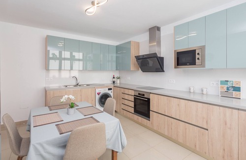 Located on a high floor with elevator access, this apartment combines style, comfort, and functionality. Just 6 miles from Las Alcaravaneras beach and 5 miles from the renowned Las Canteras beach, it's perfect for both work and leisure stays. There's also a Spar supermarket just 100 meters away and the iconic Pérez Galdós Theater only 900 meters away, providing convenient access to everything needed for a complete stay.