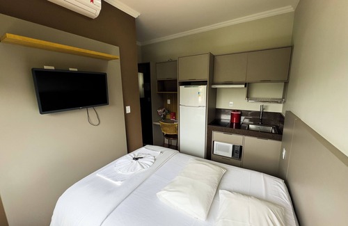 GeneralNumber of living rooms 0, Cookware, dishware, and utensils, Kitchen, Number of bedrooms - 0, Stovetop, Refrigerator, Bed count minimum 1, Bed count maximum 1, City view |