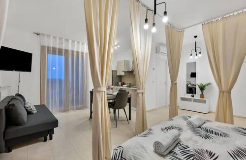 We offer a large open-space finely furnished and equipped with all modern comforts, with private garage and panoramic terrace, just 10 minutes from Linate airport and 1.5km from the Lambrate Metro stop.