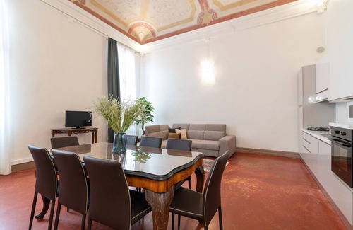 13 Splendid apartments of various types and sizes located within the 500esque building "Cà Bollani".Frescoed, canal-facing apartment on the second floor with elevator, consisting of two bathrooms with shower and window; large living area with sofa and open kitchen equipped with dishwasher and microwave. Finally, two bedrooms with two queen-size beds each.There is a sofa bed in the apartment.On the ground floor available to all guests is a laundry area with a washing machine and dryer. All apartments are also equipped with air conditioning, heating, and a free Wi-Fi line.* Guests can access the accommodation via a numeric code, which they can obtain only after completing the online registration of their IDs, signing the digital rent agreement, and paying the tourist tax via a payment link they will receive a few days before arrival. The code will be active starting from 3 p.m.*Cot available upon request, at an extra cost of 35€ per stay.We also offer our guests authentic experiences to live in contact with local people. If interested, please contact us and we will be happy to help you in creating your perfect vacation discovering the beauty of Italy.Known worldwide as the city built on water, given its construction on 100 islands in the lagoon, Venice is one of Italy's most popular locations worldwide.It is a real open-air museum, thanks to its historical and artistic heritage made of churches, palaces, and museums.Strolling through Venice is like diving in the past: the so-called calli (streets) are dotted and framed by aristocratic buildings such as the Doge's Palace, the historic home of the Doges, spectacular bridges including the famous Rio Alto Bridge, and canals navigable by gondolas, waterbuses, and boats of all kinds.The heart of the city is the enchanting St. Mark's Square, which houses the Basilica of the same name and welcomes thousands of tourists from all over the world every day.The most famous local event is definitely the Carnival, thanks to its centuries-old tradition of masks and costumes that enliven the streets every year.Last but not least, the famous "Bàcaro Tour" is a must: a tour among taverns where to taste local wine along with cicheti, typical Venetian tasty bites.The accommodation is a 12-minute walk from Venice Santa Lucia Station and 13 km from Venice Marco Polo Airport.