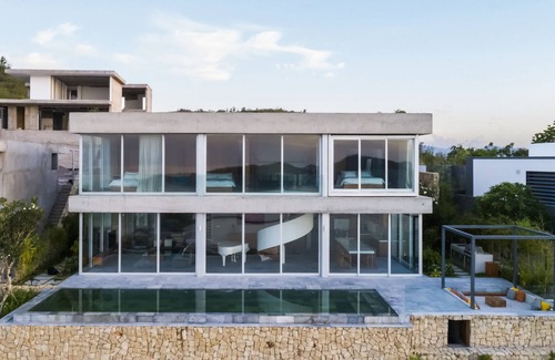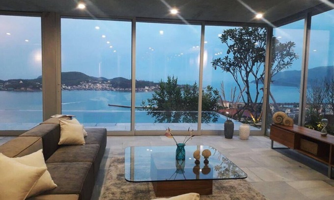 The first floor of Villa offers a light-filled living space with modern fully equipped kitchen. Ceiling sliding windows let the alluring 180 degree sea-view in, creating an illusion of being outside even when inside.