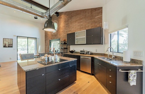 Views will not disappoint! Nestled in gated Ventana CC this 2121sq foot, 2 bedroom/Den, 2 bath home combines industrial chic with modern refinements. Enter in to private courtyard & foyer. Great room with wide plank European white oak floors, exposed ductwork & brick, hardwood pillars/beams, new ceiling fans & electric skylight blinds. The fabulous kitchen with new appliances includes a Bosch induction cook top, dual oven, water purifier, smart refrigerator, drink fridge & ample cabinetry. Bedrooms are large with dedicated bathrooms & the house has been upgraded throughout.