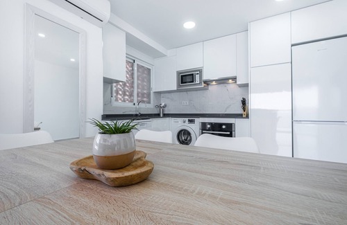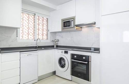 The apartment in Benidorm has 2 bedrooms and has capacity for 5 people.The apartment is tastefully-furnished, is very light, and is 70 m². The property is located right next to the beach. It has views of waterfront aand the mountain.The accommodation is equipped with the following items: lift, garden, fenced garden, 12 m² terrace, iron, internet (Wi-Fi), heat pump, air conditioning throughout the house, communal+children's swimming pool, open-air parking the same building subject to availability upon arrival, 3 TVs.In the induction open plan kitchen, refrigerator, microwave, oven, freezer, washing machine, dishwasher, dishes/cutlery, kitchen utensils, coffee machine, toaster, kettle and juicer are provided.-Check-in its done at our office located at Avenida del Mediterraneo 66, local 2, trade name BenidormBooking, right in front of the Casino.-Credit card details, will be required as damage deposit, or 200€ instead.-Check-in from 16:30h (high season can be delayed at 6:00 p.m.)-Check-out before 11:00hThe property is located 5 m from Playa de Levante sand beach, 20 m from the from the restaurant, 25 m from Super Veracruz supermarket, 50 m from Parada Local bus station, 250 m from Carrefour Express supermarket, 500 m from Cable ski acuático ski resort, 1 km from Cala del Tio Ximo rock beach, 2 km from La Estación Benidorm bus station, 2 km from Aqualandia water park, 2 km from Playa del Mal Pas sand beach, 2 km from Playa de Poniente sand beach, 3 km from Tram Benidorm train station, 7 km from Las Rejas golf course, 10 km from Aqua Natura water park, 10 km from Terra Mítica amusement park / theme park, 15 km from Pantano La Vila lake, 20 km from El Algar river, 30 km from Puig Campana nature reserve, 45 km from Renfe Terminal de Alicante train station, 55 km from El Altet Alicante airport, 142 km from Balneario de Archena thermal springs, 146 km from Manises Valencia airport. The house is situated in a lively neighborhood next to the sea.