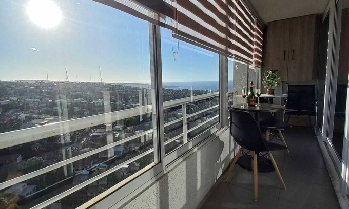 Lindo Dpto. Edificio AltaVista 3 Viña del Mar , overlooking the bay of Valparaíso and Viña. 7 minutes from the city center and close to the Celoj de Flores and beaches; Bars, Supermarkets and Commerce. Excellent connectivity, 1 hour from Santiago and 10 minutes from Valparaiso. Equipped with cleaning products. It has visiting parking subject to availability, a safe area being a point to pick up and return Awto a vehicle rental app.