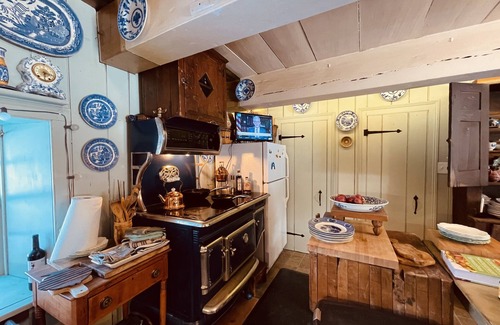 House is furnished with antique furniture which mostly date to 1800s or earlier with some pieces of furniture from early 1900s. Plates adorning the walls are mainly delft with some Chinese and Japanese blue plates.