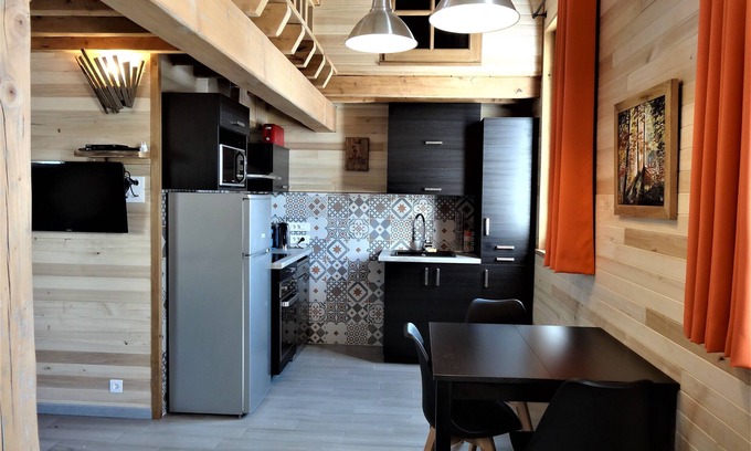 VERY BEAUTIFUL DUPLEX 2 PEOPLE view of the village square (DONE AGAIN 2018) is located in Saint-Honore-les-Bains. VERY BEAUTIFUL DUPLEX 2 PEOPLE view of the village square (DONE AGAIN 2018) provides accommodation, featuring Wellness Facilities, Kitchen, Parking, among other amenities. This Apartment features Wellness Facilities, Kitchen, Parking, to make your stay a comfortable one.