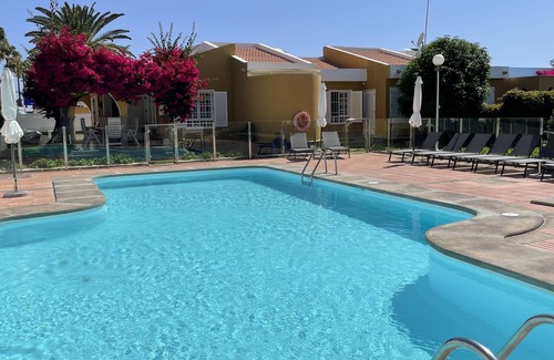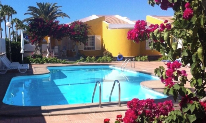 Complex of seven bungalows with pool south of the island, Very bright we can say that the best definition of the house is the tranquility of the complex. 24h free wifi. For people who want to play golf we have a few meters from the Maspalomas golf course, and the tennis club, which also has a gym. The house has about 130 m fully equipped.