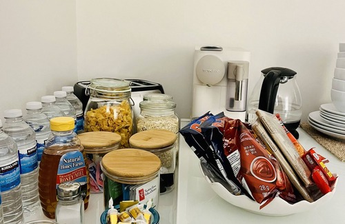 Guest access Mini fridge, microwave, Nespresso coffee machine, toaster, electric kettle available. All new white bed linens, towels, shampoo, soap available for guests.